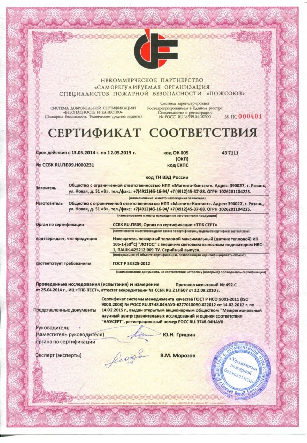 пороговый, 50 С, без выносного оптического индикатора ИВС-1, путем размыкания сухих контактов извещателя