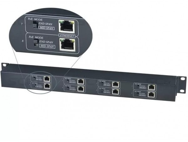 Приёмник Ethernet и питания (PoE) 8-канальный. Работает совместно с IP01P (до 8 устройств). Расстояние передачи по коаксиальному кабелю RG6U до 300м. Позволяет использовать коаксиальную кабельную инфраструктуру для подключения IP-камер. Максимальная мощность на выходе 300м/15W, 200м/18W, 100м/20W. Совметим с IEEE 802.3af/at. Поддерживает Ethernet 10/100Мбит/с. Вх. RJ45x8. Вых. BNCx8. Питание от источника PoE. Размеры (ШxВxГ) 483x44x75.5мм. Монтаж в стойку 19 . Рабочая температура -40 +55 C.