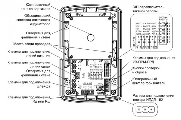Тестером ИПДЛ-152 и лазер. указат. (оба приоб), кнопкой (Пож/Неиспр)