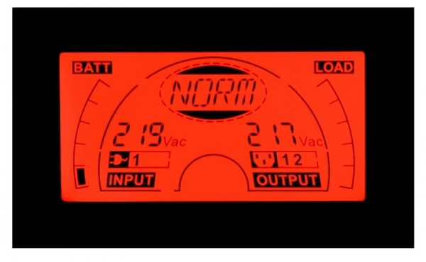 В процессе эксплуатации ИБП экран отображает текущий режим работы и важные параметры: уровень заряда батарей и мощность подключенной нагрузки, напряжение и частоту электрического тока и т.д.