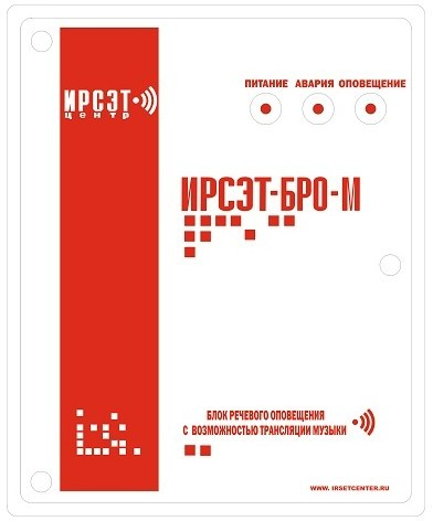 Блок речевого оповещения для работы в составе системы речевого оповещения ИРСЭТ в качестве устройств для формирования и трансляции речевых сообщений, трансляции фоновой музыки и информации.Контроль линии оповещения.Для трансляции сообщений с внешнего микрофона предусмотрена возможность подключения модуля микрофонного усилителя.