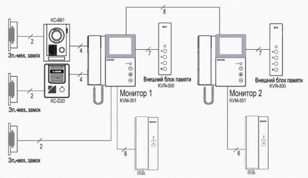 Трубка KDP-602G и блок памяти KVR-300 (доп. приобр.); интерком