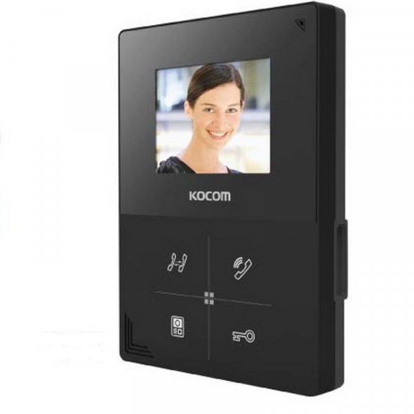 KCV-401EV (чёрный) - цветной домофон 4 дюйма без трубки (Hands Free) обеспечивает функции наблюдения за посетителями, переговоров и открытия замка, со встроенным интеркомом и блоком питания.