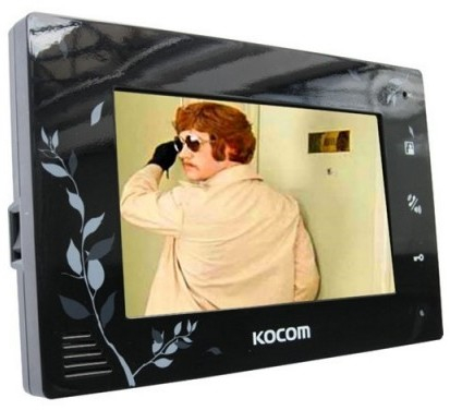 KCV-A374SD LE (чёрный) - цветной домофон 7дюймов без трубки (Hands Free) с рисунком и глянцевой поверхностью, с сохранением цветных кадров и видео на карточку SD (32 Гб), обеспечивает функции наблюдения за посетителями, переговоров и открытия замка, со встроенным интеркомом и блоком питания, совместимость с вызывными панелями JSB, Activision, Ascent, Kenwei и другими.