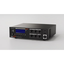 Один канал, мощность на выходе составляет 80 Вт. Возможно подключение как трансляционных (напряжение в линии 70/100В), так и низкоомных (импеданс линии 4-16 Ом) акустических систем. Важно отметить, что одновременно можно применять акустику только одного типа. Диапазон воспроизводимых частот 80 Гц - 20 кГц.