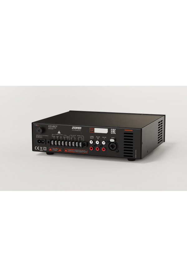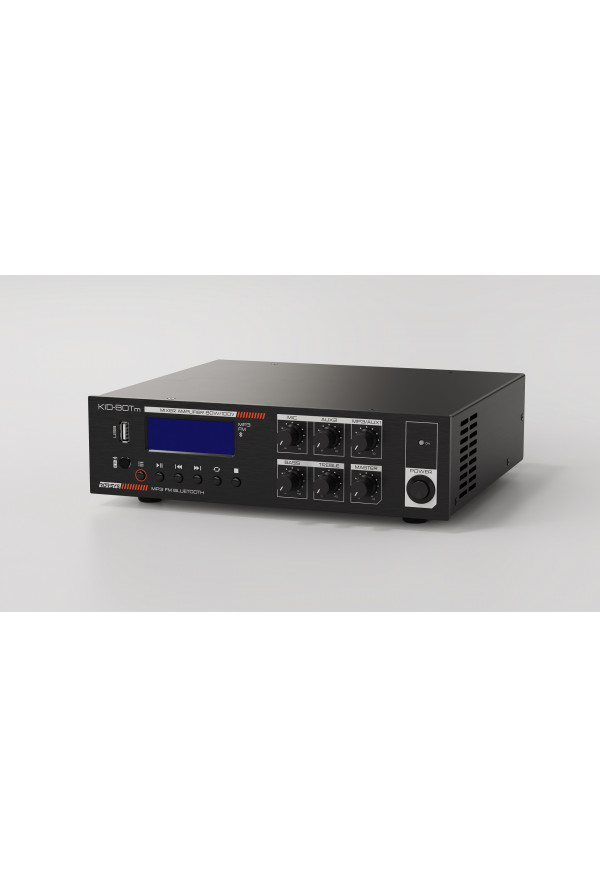 Микшер-усилитель с медиаплеером KID-80Tm является отличным решением при организации системы фонового/сопроводительного музыкального вещания и/или голосового оповещения на объектах небольших площадей. Благодаря встроенному плееру может воспроизводить звук без сторонних источников. Встроенный Bluetooth 5.0, FM-тюнер и разъём USB покрывает все возникающие потребности в источниках музыки. Усилитель прекрасно подойдёт для ресторанных залов, кафе, магазинов, АЗС и т.п.