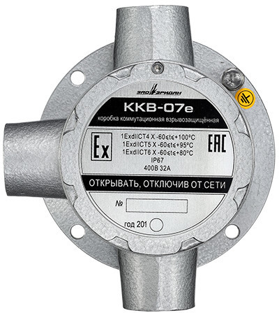 ККВ-07е-А-Т - коробка коммутационная взрывозащищенная тройниковая с переходной платой для установки адресной метки (НИТА, БОЛИД) предназначена для соединения и разветвления электрических цепей общего и специального назначения (контрольных и силовых кабелей систем автоматики и телемеханики, цепей управления, сигнализации и т.д.) и применяется на предприятиях химической, нефтегазодобывающей, нефтегазоперерабатывающей отраслей и взрывоопасных зонах других производств.
