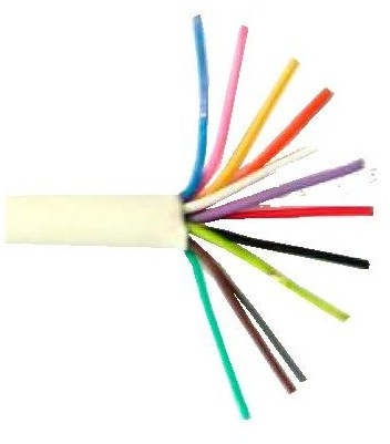 Кабель монтажный с медными однопроволочными жилами, количеством 12 шт и диаметром 0,4 мм, с изоляцией из полиэтилена, в оболочке из ПВХ пластиката.