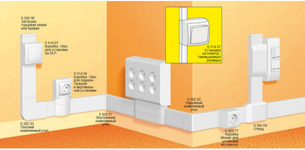 Данное изделие монтируются на месте традиционных плинтусов и позволяют устанавливать оборудование серий - Celiane, Galea Life, Mosaic, Oteo.