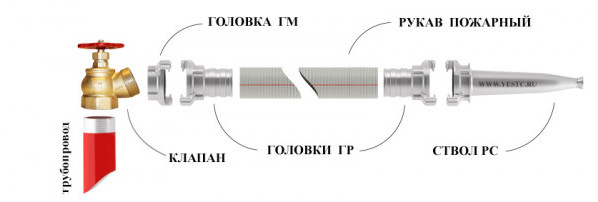 Для напорных пожарных трубопроводов и рукавов, угловой (125 град)