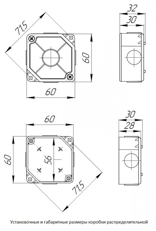 КР60х60х30, IP65 (с 4-мя заглушками)