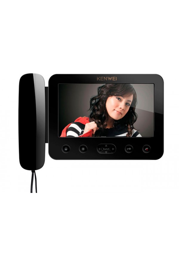Монитор PAL/NTSC видеодомофона с трубкой, TFT LCD 7 , 2 вызывные панели, 1 аудиотрубка, русское меню, подключ. дверного звонка, 12 полиф.мелодий, питание от монитора внеш.устройств - 12V, совместимость с выз.панелями JSB, Activision, Ascent