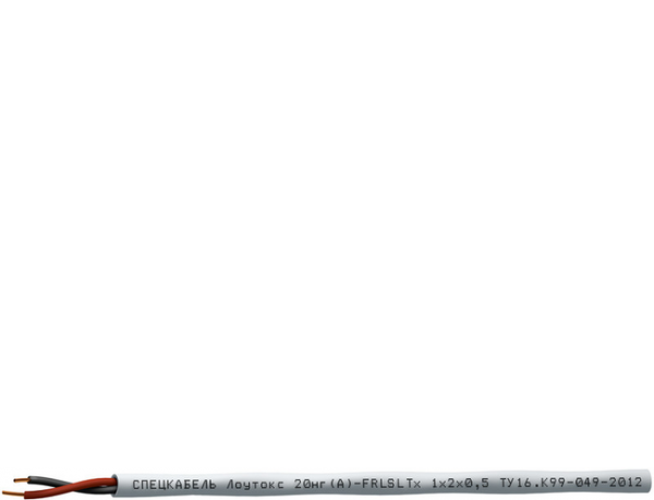 Кабель Лоутокс 20нг(А)-FRLSLTx 1х2х1,5 (Спецкабель) – огнестойкий с однопроволочными 2-мя скрученными в пару жилами, с низким дымо- и газовыделением, низкой токсичностью продуктов горения предназначен для одиночной и групповой стационарной прокладки в современных системах сигнализации, в системах контроля доступа, а также в других системах управления, контроля АСУТП и связи, на рабочее напряжение до 300 В.