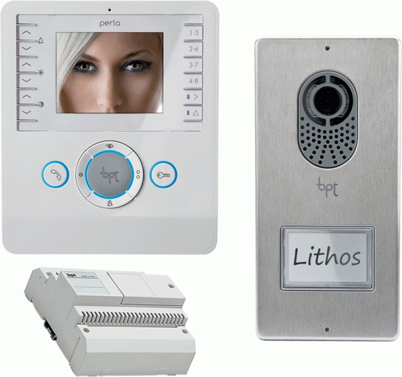 Комплект видеодомофона PERLA (белый лед) c вызывной панелью LITHOS (PEV BI, LVC/01, DPH, VAS/101)