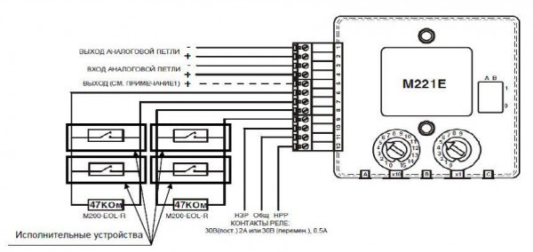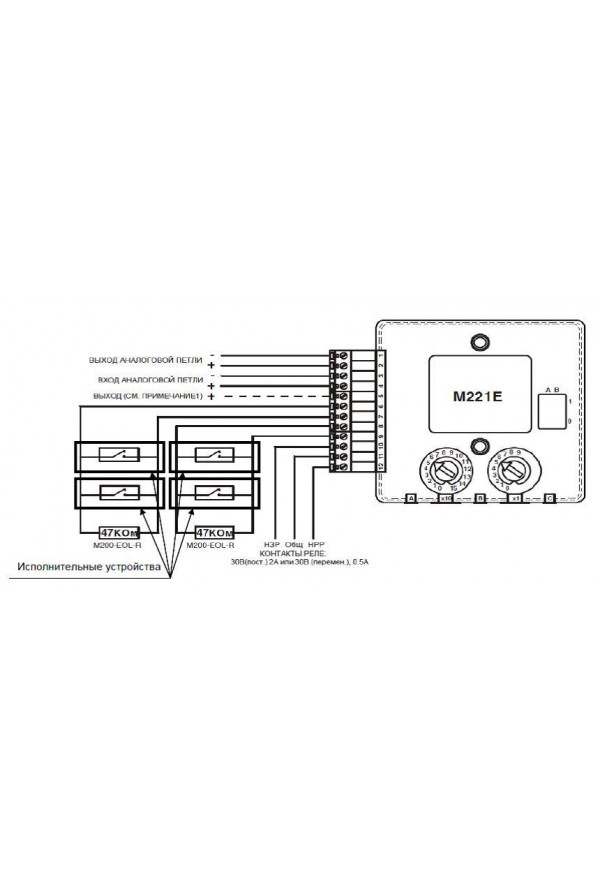 M221E - модуль контроля 2-ух канальный и управления 1-канальный в монтажном боксе подключается в 2-ух проводный адресный шлейф и обеспечивает контроль и управление через 2 выхода шлейфов для подключения устройств регистрации срабатывания средств противопожарной защиты и устройств, оказывающих влияние на алгоритм работы приборов, а также через 1 выход управление вспомогательными устройствами (клапанами и др.).