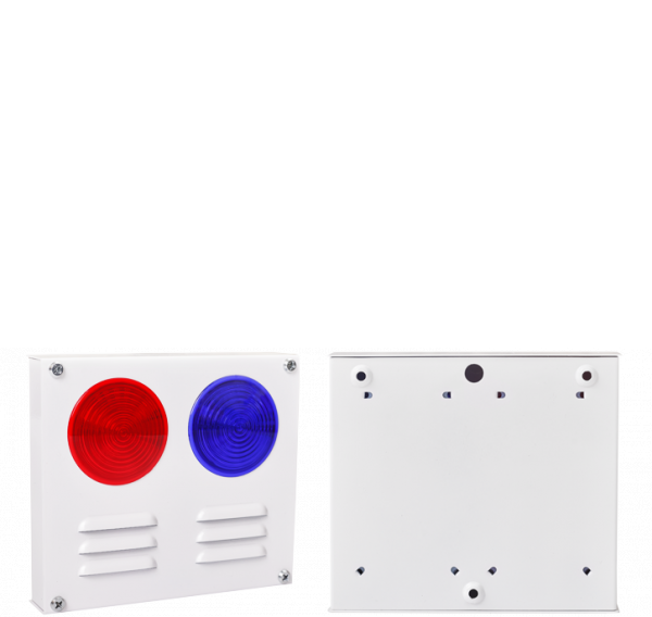 Комбинированный оповещатель, 12В(+1,8 /-3,0), звук-2х57мА, свет-2х20мА, 110дБ, 125x142x36,масса 0,33кг, диапазон раб.темп.°С (-30/+55), отн.влаж.возд.при +25 °С 95%, IP52. (2 звуковые сирены, по 110дб каждая. 1 красный рассеиватель, 1 синий рассеиватель)