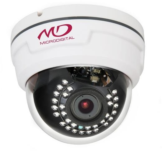 Купольная камера для помещений, 1.3 Мegapixel 1/3 Progressive High Sensitivity CMOS, Убираемый ИК-фильтр, AHD (720p) / CVBS (960H), Объектив АРД, 2.8~12.0мм, S/N более 50dB, День/Ночь, 0Лк(ИК вкл), ИК-подсветка (30 ИК-диодов), Дальность ИК-подсветки 50м, ATW, DSS, BLC, AGC, 3D-NR, D-WDR, De-Fog, OSD, Рабочие температуры -10~+50, 12В DC, 300мА