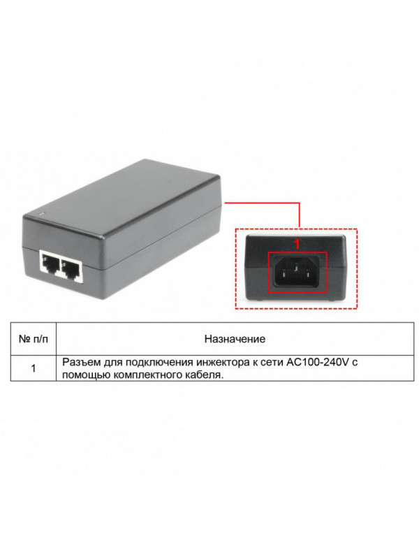 Назначение: устройство предназначенное для подачи питания (PoE) на оконечное PoE устройство по кабелю витой пары.