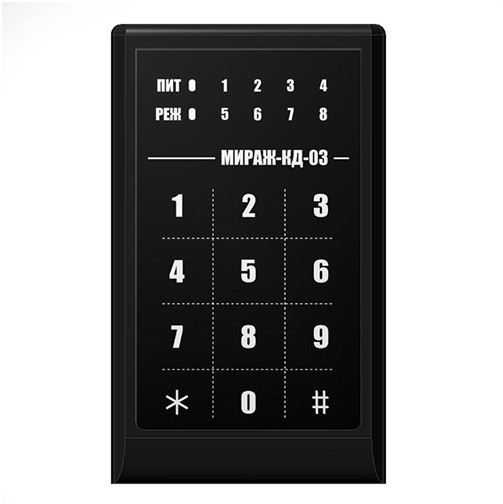 Мираж-КД-03 (black) - сенсорная кодовая панель (чёрного цвета) подключается к объектовому оборудованию для ввода кодов постановки объекта на охрану и снятия с охраны.