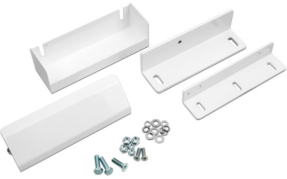 MK AL-150PR - Inside белый - монтажный комплект белого цвета для электромагнитных замков AL-150 PRemium на дверях, открывающихся внутрь, состоит из уголка корпуса, уголка якоря, кронштейна, кожуха, кожуха кронштейна и элементов крепежа.