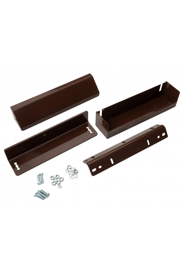 MK AL-300-400PR - Inside коричневый - монтажный комплект коричневого цвета для электромагнитных замков AL-300 PRemium, AL-400 PRemium и AL-400FP на дверях, открывающихся внутрь, состоит из уголка корпуса, уголка якоря, кронштейна, кожуха, кожуха кронштейна и элементов крепежа.