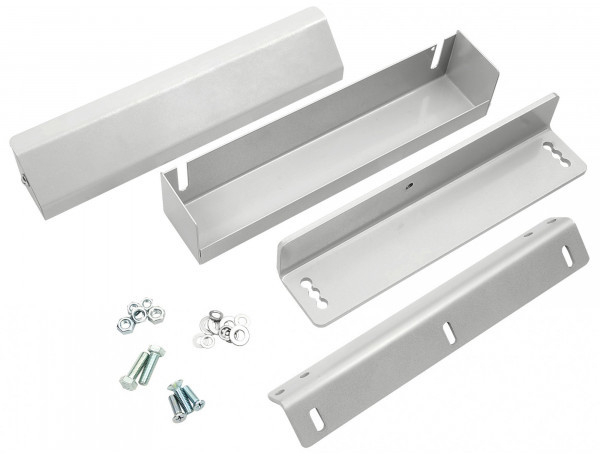 MK AL-200PR - Inside серый - монтажный комплект серого цвета для электромагнитных замков AL-200 PRemium и AL-200FB на дверях, открывающихся внутрь, состоит из уголка корпуса, уголка якоря, кронштейна, кожуха, кожуха кронштейна и элементов крепежа.