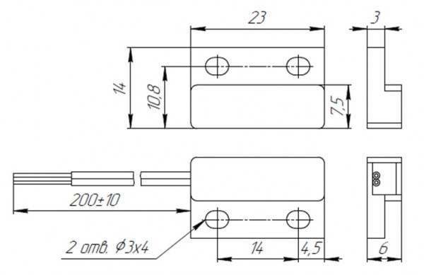 Универсальный ультраминиатюрный (23х14х6 мм), датчик положения, для установки на все типы поверхностей. Нормально разомкнутый, вывод 200мм, коммутируемое напряжение до 180 В. Расстояние срабатывания/ восстановления: на магнитоактивной поверхности 6/10 мм, на магнитопассивной поверхности 11/18мм. Температура окружающей среды от -50 до +70 °С