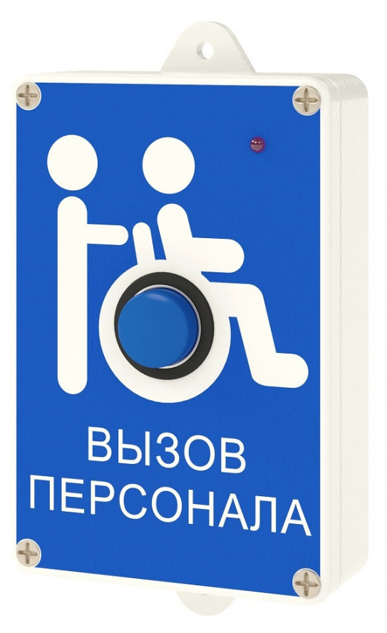 MP-413W7 - радиокнопка вызова влагозащищенная (IP44) выполнена в корпусе из ударопрочного пластика, на лицевой панели которой нанесена стойкой к истиранию и УФ-излучению краской пиктограмма «Инвалид».