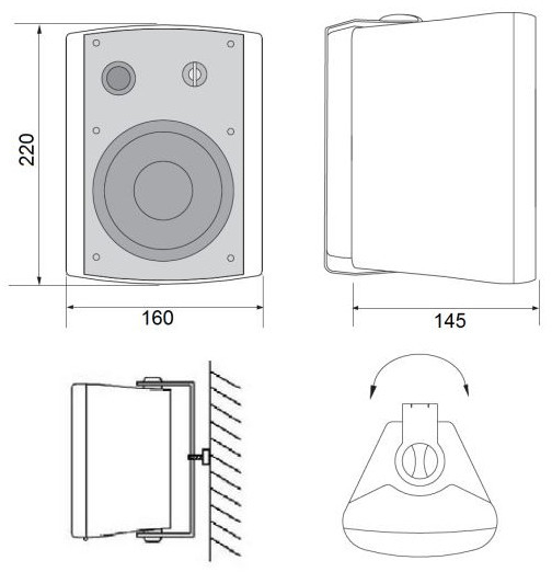 Акустическая система 20 Вт, белый или черный, кронштейн для крепления