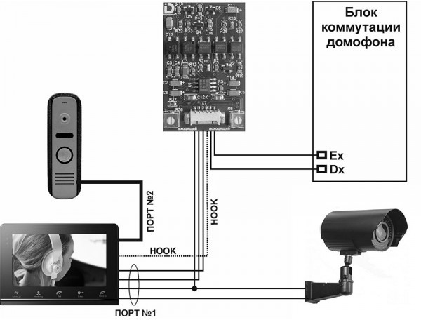 Для видеодомофонов, оснащенных сервисным выходом сигнала положения трубки (HOOK), предусмотрена схема отключения автоподнятия трубки.