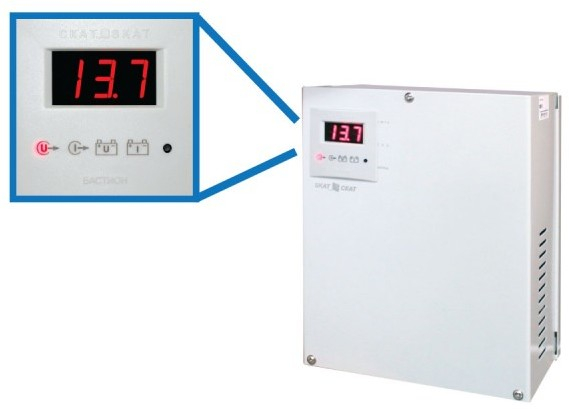 Модуль визуализации для СКАТ. Цифровая индикация напряжения на нагрузке, тока нагрузки, напряжения АКБ, тока заряда АКБ индикация отключения электрической сети. Для использования в источниках питания серии СКАТ 12В в металлических корпусах с окном.