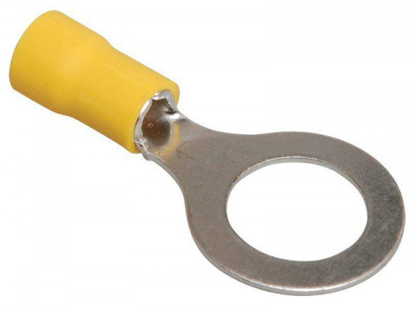 Кабельный наконечник кольцевой изолированный под провода для проводников сечением 6 кв.мм., цвет желтый, медь.