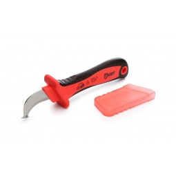 - Частично изолированное изогнутое лезвие с «пяткой» для легкого вскрытия оболочки кабеля без риска повреждения жилы