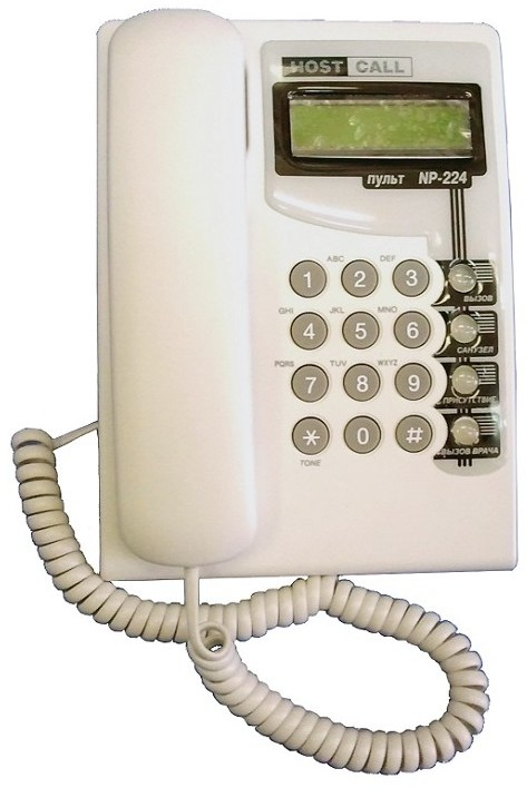 NP-224.2 - пульт медсестры с телефонной трубкой предназначен для организации поста дежурного персонала с разговорным трактом.