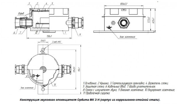 - Оповещатель звуковой взрывозащищенный ОРБИТА МК З-Н-К
