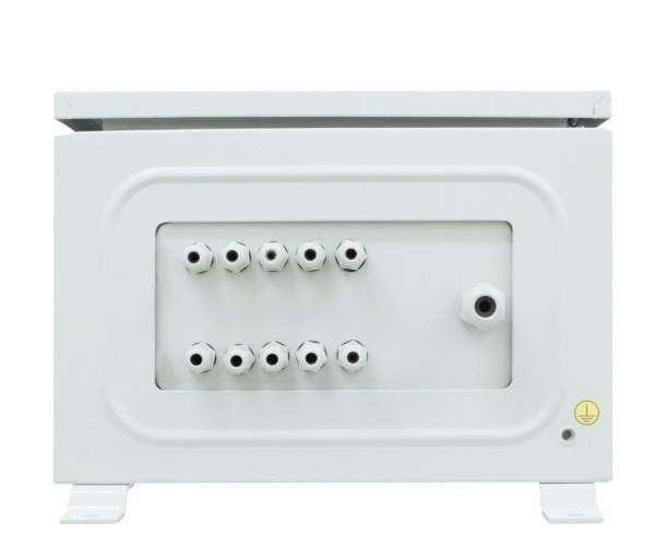 В основе металлический шкаф (листовая сталь 1,5 мм порошковая окраска цвет - серый) под установку оборудования на встроенные DIN-рейки: верхняя - 65мм, нижняя - 60мм.