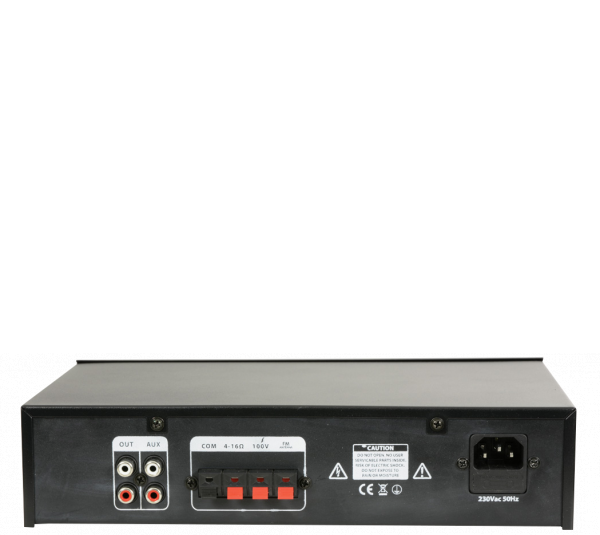 PA-1040 - трансляционный 1-зонный усилитель выходной мощностью 40 Вт., а также MP3 плеером (USB) и FM радио предназначен для усиления звукового сигнала с целью его дальнейшей трансляции на громкоговорители 4 - 16 Ом или с питанием 100 В.