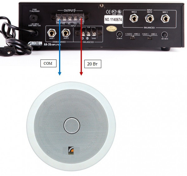 Для подключения трансляционной линии используется выводы из корпуса.