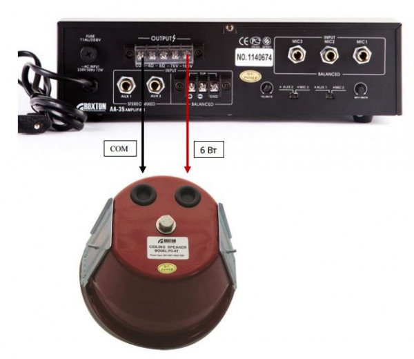 - Roxton PC-06T (громкогов огнезащитн потолоч трансф 0,75_1,5_3_6 Вт 90дБ 70_100в IP41 -10+55) руков