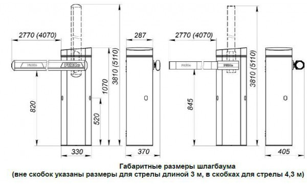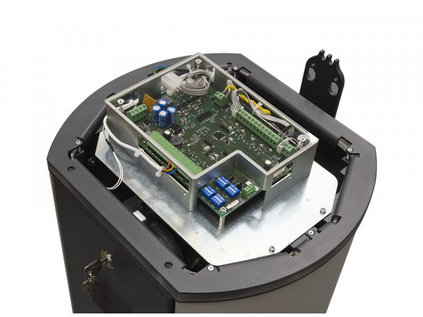 PERCo-GS04 - тумба шлагбаума без стрелы (прямоугольно-овальная или круглая алюминиевая от 3 (2,5 - заказ) до 4,36м - приобретается отдельно) для ширины проезда от 2,8 (2,3) до 4м, с встроенными и напряжением питания DC (21,6 - 26,4)В: электромеханическим приводом, блоком управления, приёмником фотоэлемента, подогревом (ниже минус 100С).