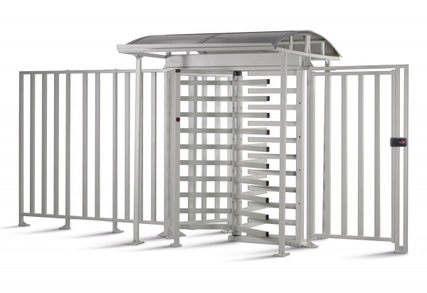 Дополнительная защита турникета от атмосферных осадков и попыток проникновения через его верх, достигается установкой крыши (приобретается отдельно), соединяемой с турникетом в единую конструкцию.