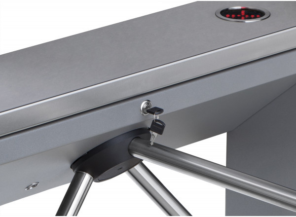 В турникет встроен замок механической разблокировки, позволяющий, в случае необходимости, с помощью ключа разблокировать его (обеспечить свободный поворот преграждающих планок).