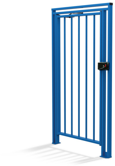Калитка выполнена в едином дизайне с полноростовым турникетом RTD-16 и полноростовым ограждением MB-16, может отпираться как дистанционно, так и механическим ключом.
