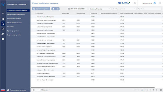 PERCo-WM01 Модуль «Учет рабочего времени» предназначен для ведения учета рабочего времени сотрудников и составления отчетов о дисциплине труда.