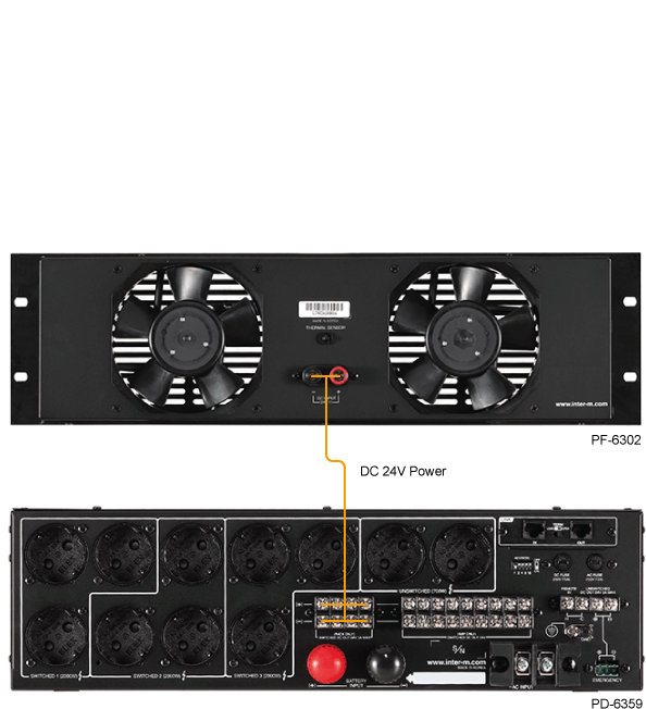 PF-6302 - блок автоматических вентиляторов (2шт.) для установки в верхней части 19’' шкафов Inter-M серий PR-A, PR-NA и PA-D.