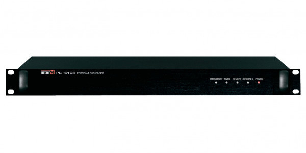 PG-6104 - блок программного обмена для применения в многоканальных системах автоматического оповещения и музыкальной трансляции Inter-M серии 6000 и обеспечения коммутации сигналов от различных источников в соответствии с уровнем их приоритета.