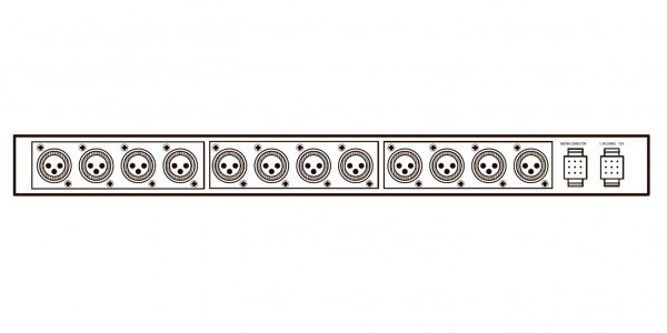 В устройстве предусмотрено 4 балансных линейных входа для подключения источников музыкальной трансляции, 4 балансных линейных входа для подключения источников приоритетного сигнала, 4 балансных линейных выхода.
