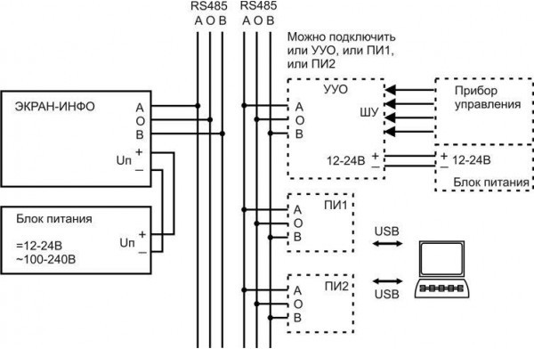 ПИ2 - преобразователь интерфейса USB в RS-485 и обратно с гальванической развязкой для конфигурирования через ПК (с длиной линии - более 2000м) оповещателя "ЭКРАН-ИНФО" и 1-го или группы ПКП "Дозор-1А" (подключается непосредственно к разъемам прибора) с целью их настройки при работе с различными прикладными программами.