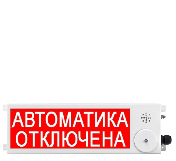 Плазма-Ехi-С Автоматика отключена - оповещатель (Табло) "Автоматика отключена" пожарный моноблочного типа, взрывозащищенный (0ExiaIICT6GaX/Р0ExiaIMaX/ExiaIIICT85°CDaX), световой (непрерывный, прерывистый по схеме: подачей напряжения), искробезопасный, регулировкой через DIP-переключатель яркости свечения (нормальной, пониженной), напряжением питания (9 - 13,8 В) от искробезопасного ППКОП или барьера искрозащиты ("Плазма" АБИЗ), степенью защиты (IP68), с 1-им кабельным вводом из полиамида для прокладки любого кабеля диаметром (5 - 12мм), типоразмером освещаемой части табло (360 х 120мм) предназначен для подачи светового сигнала в системах пожарной сигнализации и автоматического пожаротушения при совместной работе с любыми приемно-контрольными устройствами и применяется в подземных выработках шахт, рудников и их наземных строениях, а также на предприятиях химической, нефтегазодобывающей, нефтегазоперерабатывающей отраслей и взрывоопасных зонах (0 и ниже классов) других производств.