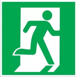 Обозначает над дверями (или на дверях) эвакуационный выход, открывающийся с левой стороны. На стенах помещений вместе с направляющей стрелкой для указания направления движения к эвакуационному выходу